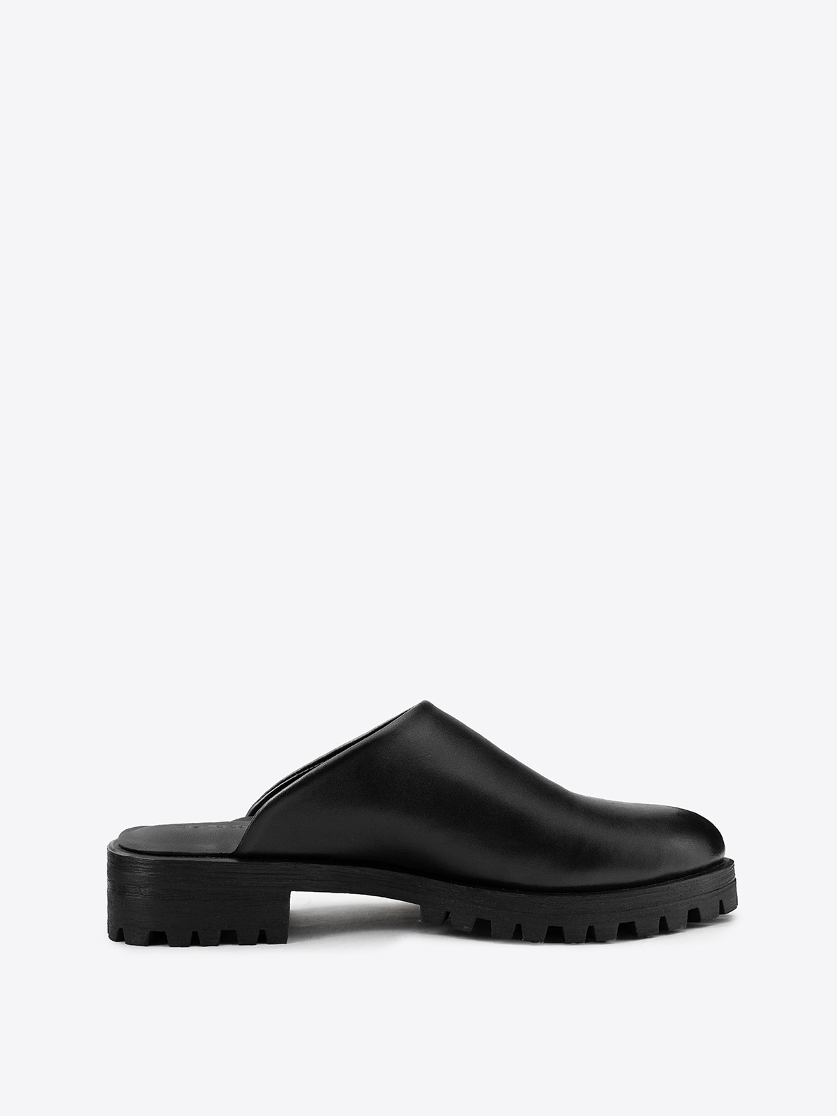 CHUNKY MULES IN BLACK LEATHER